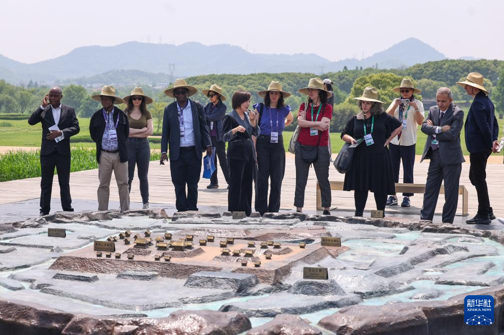 4月23日,参加论坛的嘉宾在参观良渚古城遗址公园。