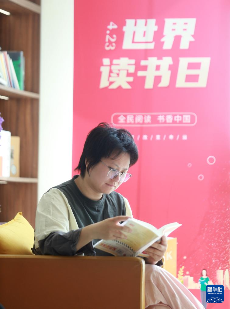 4月23日,一名市民在沈阳的时代文仓城市书房阅读。