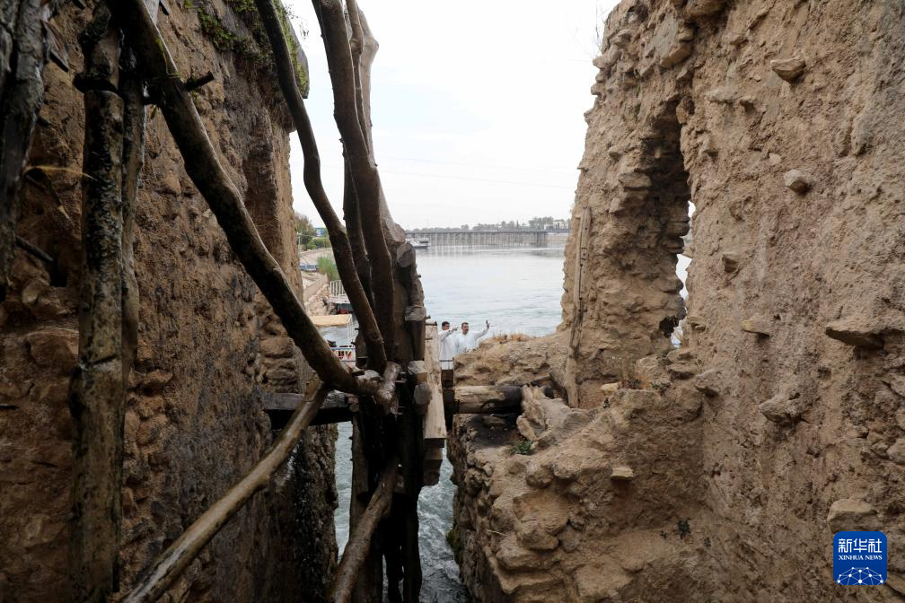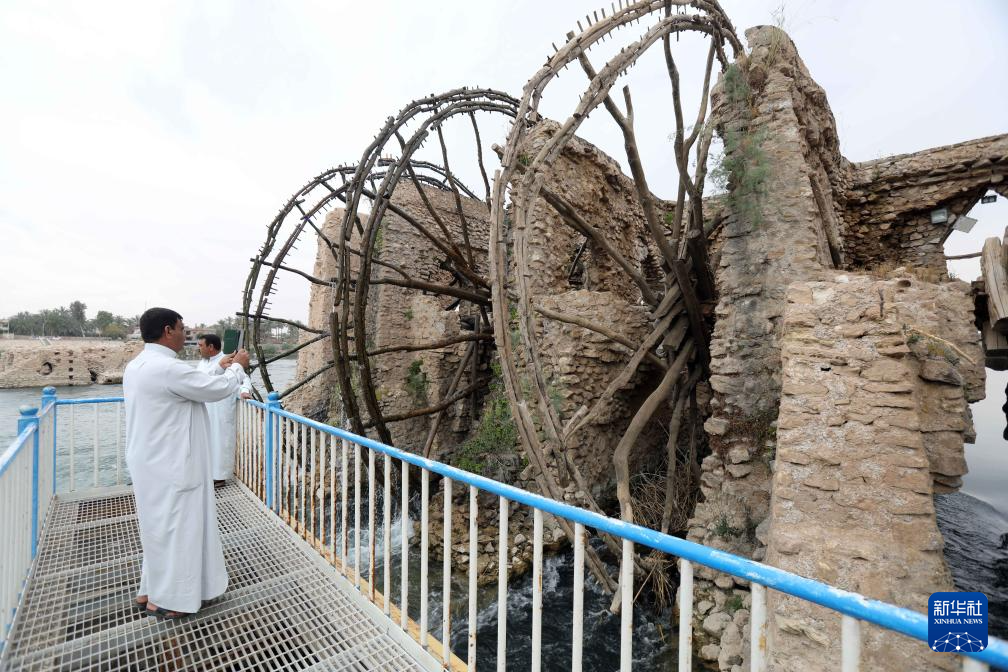 4月21日,人们在伊拉克安巴尔省参观幼发拉底河上的传统水车。