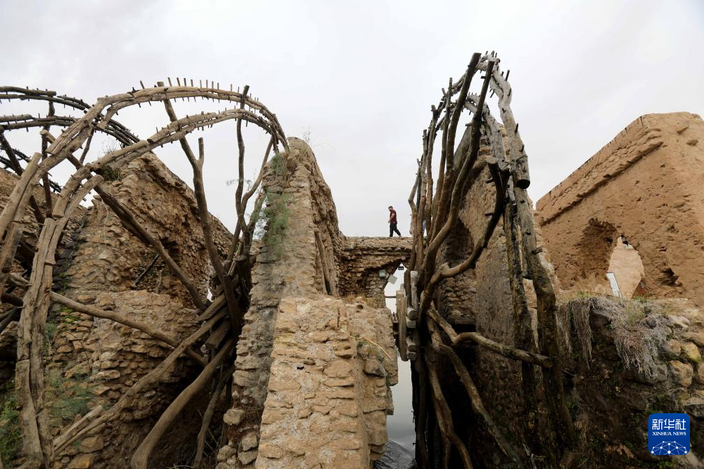 这是4月21日在伊拉克安巴尔省拍摄的幼发拉底河上的传统水车。