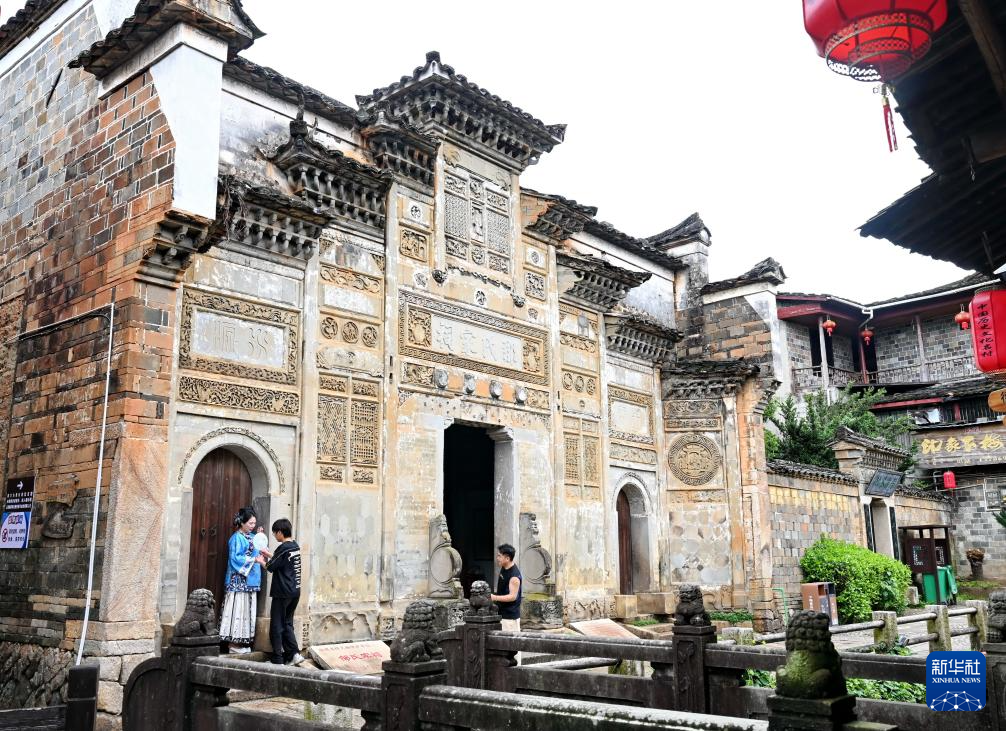 4月22日,游客在下梅村的“邹氏家祠”前拍照。