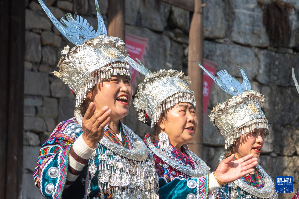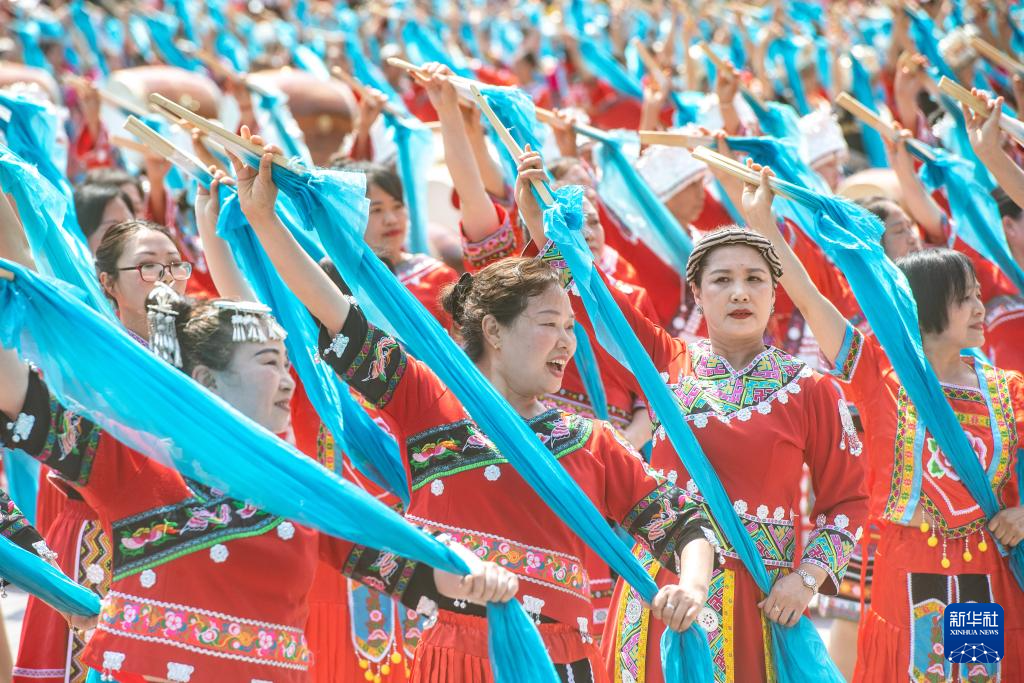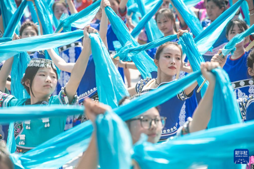 4月28日,苗族同胞在重庆市彭水苗族土家族自治县的蚩尤九黎城庆祝传统节日。