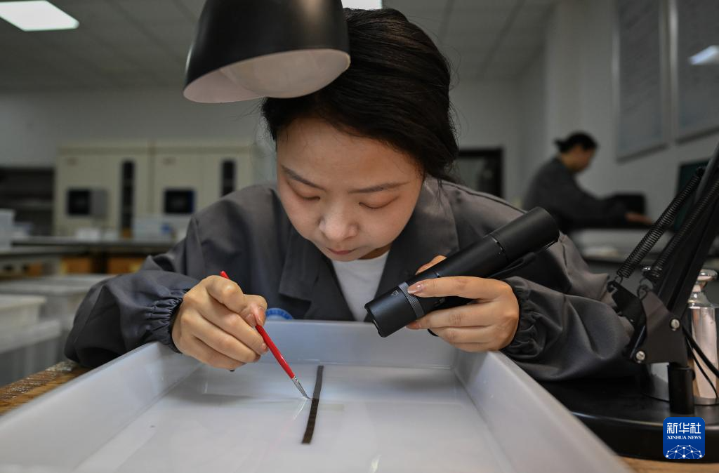 成立于2003年的荆州文物保护中心简牍工作室承担了全国约80%的简牍保护工作,涵盖湖北云梦睡虎地、荆州秦家咀、湖南长沙走马楼、湘西里耶、江西南昌海昏侯、河北定县、云南昆明河泊所等地出土的简牍约14万枚。中心结合多项重大科研课题研究,成功研发出一系列竹木简牍保护关键技术,针对饱水简牍出土后因环境改变、水分流失、微生物入侵等导致的病害问题,提供了有效的解决方案。