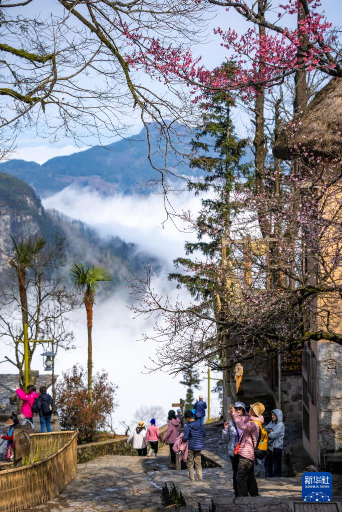 2月26日,游客在云南省元阳县阿者科村观光游览。