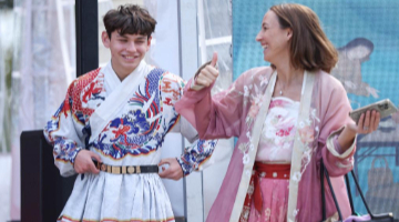 观众在中国国家博物馆内翻看《思接千载:115件文物里的古代中国》图书及相关文创产品(5月13日摄)。