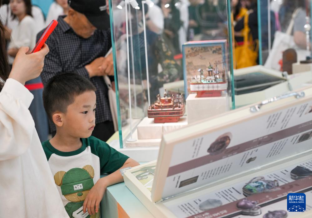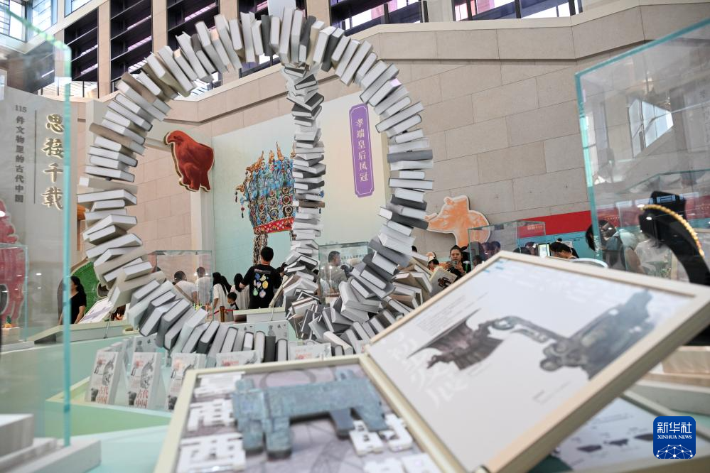 观众在中国国家博物馆内观看《思接千载:115件文物里的古代中国》图书及相关文创产品(5月13日摄)。