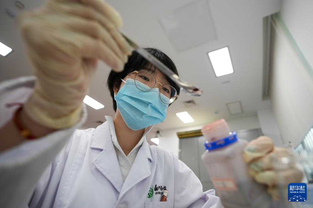 陈琰璐对文物补料进行染色(5月18日摄)。