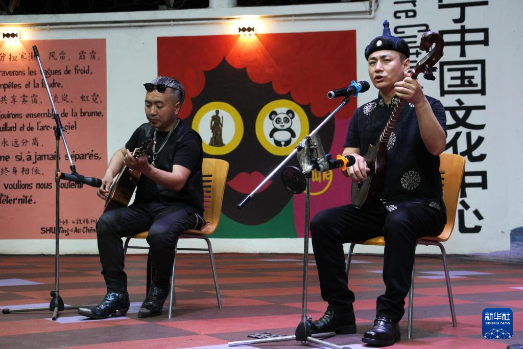 5月20日,“奈热”乐队在贝宁科托努中国文化中心表演。