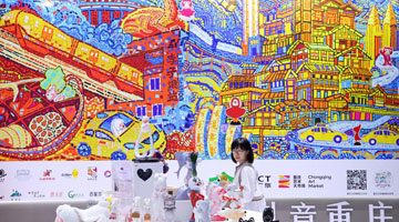 5月22日,观众在文博会重庆展区挑选盲盒产品。