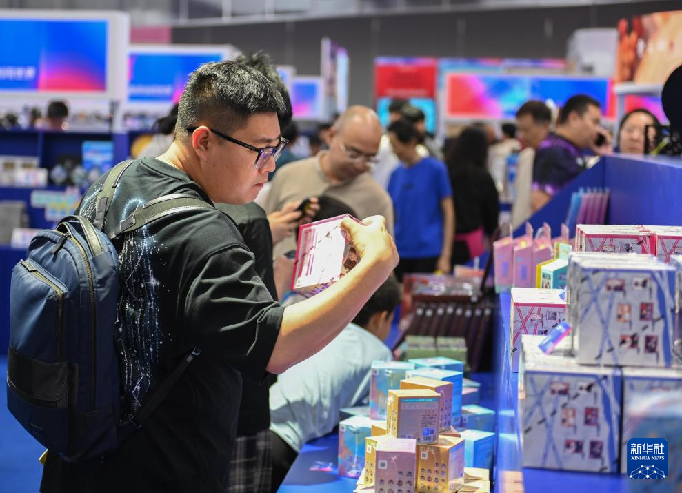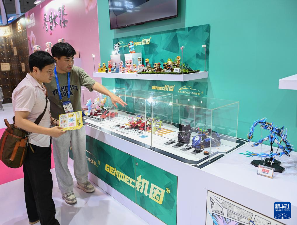 5月24日,观众在文博会“文创中国”展区了解一款电竞主题盲盒产品。