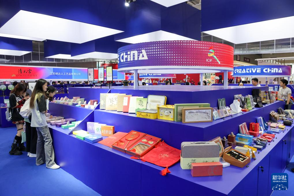 5月23日,人们在文博会“文创中国”展区选购文创产品。