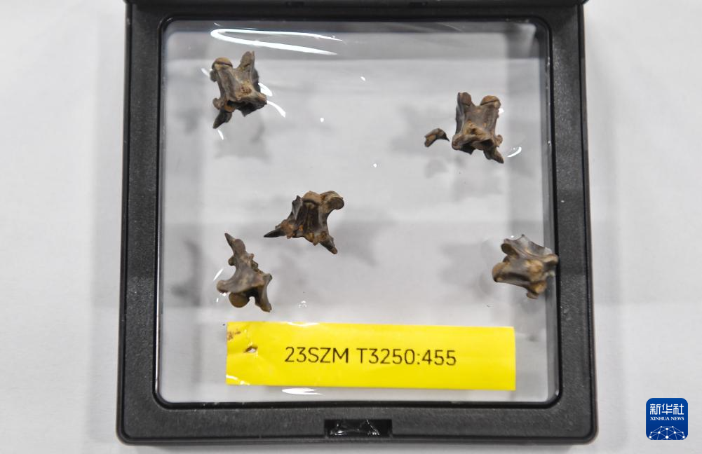 这是从四川资阳濛溪河遗址群出土的蛇骨(2023年12月5日摄)。新华社记者 刘坤 摄