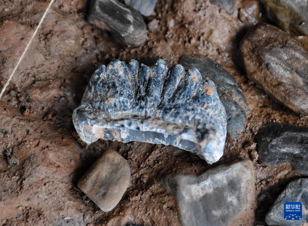 这是在四川资阳濛溪河遗址群发掘的象牙(2023年12月5日摄)。新华社记者 刘坤 摄