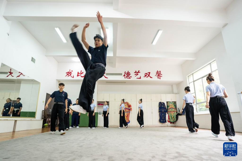 6月4日,在湖南省昆剧团练功房,青年演员们在练习基本功。