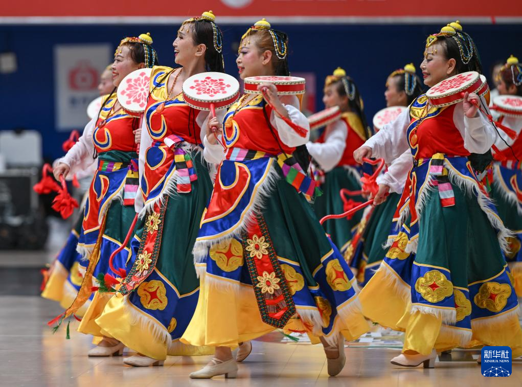 6月23日,在重庆市南岸区江南体育馆内,涂山镇代表队表演节目。