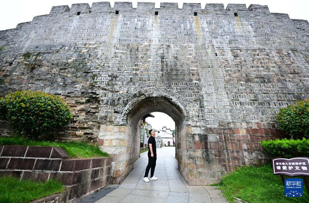 6月19日,周虎在歙县徽州古城城墙巡查。