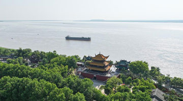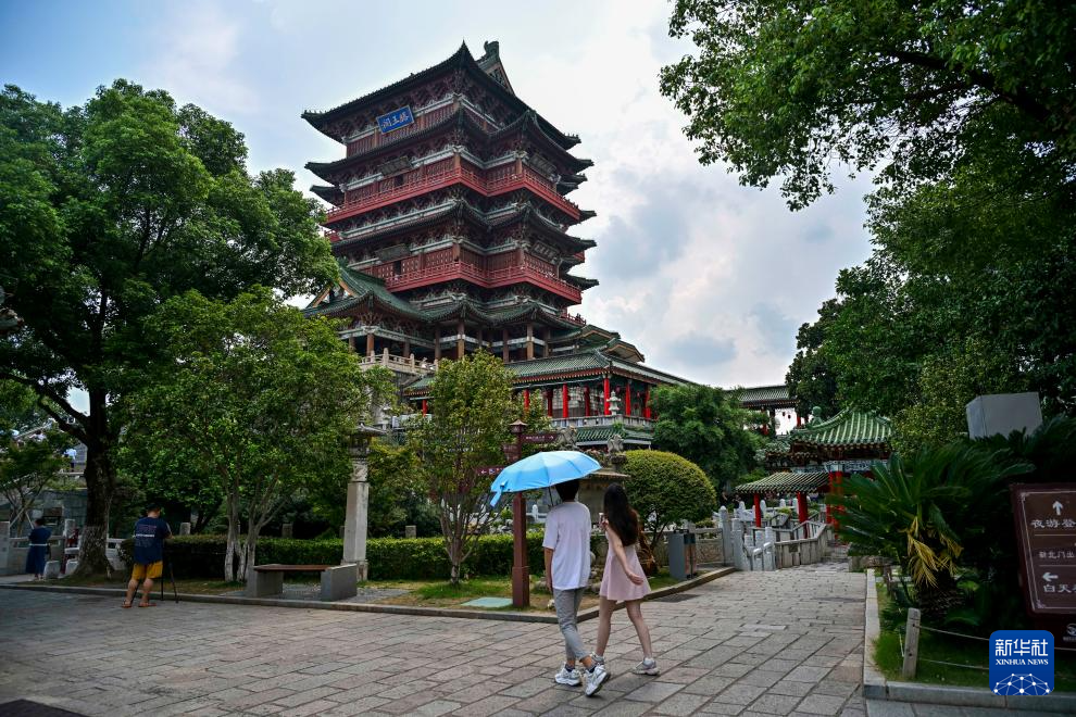 7月7日,游客在江西南昌滕王阁景区内休憩。