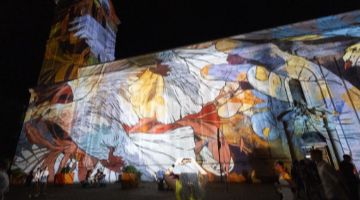 7月7日,游客参观江西南昌滕王阁内的历代滕王阁建筑景观全息数字复原展示。