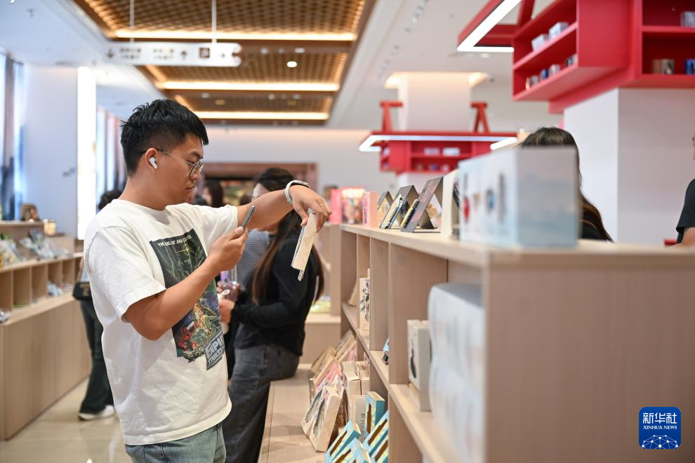 7月30日,游客在内蒙古呼和浩特市内蒙古博物院新馆选购文创产品。