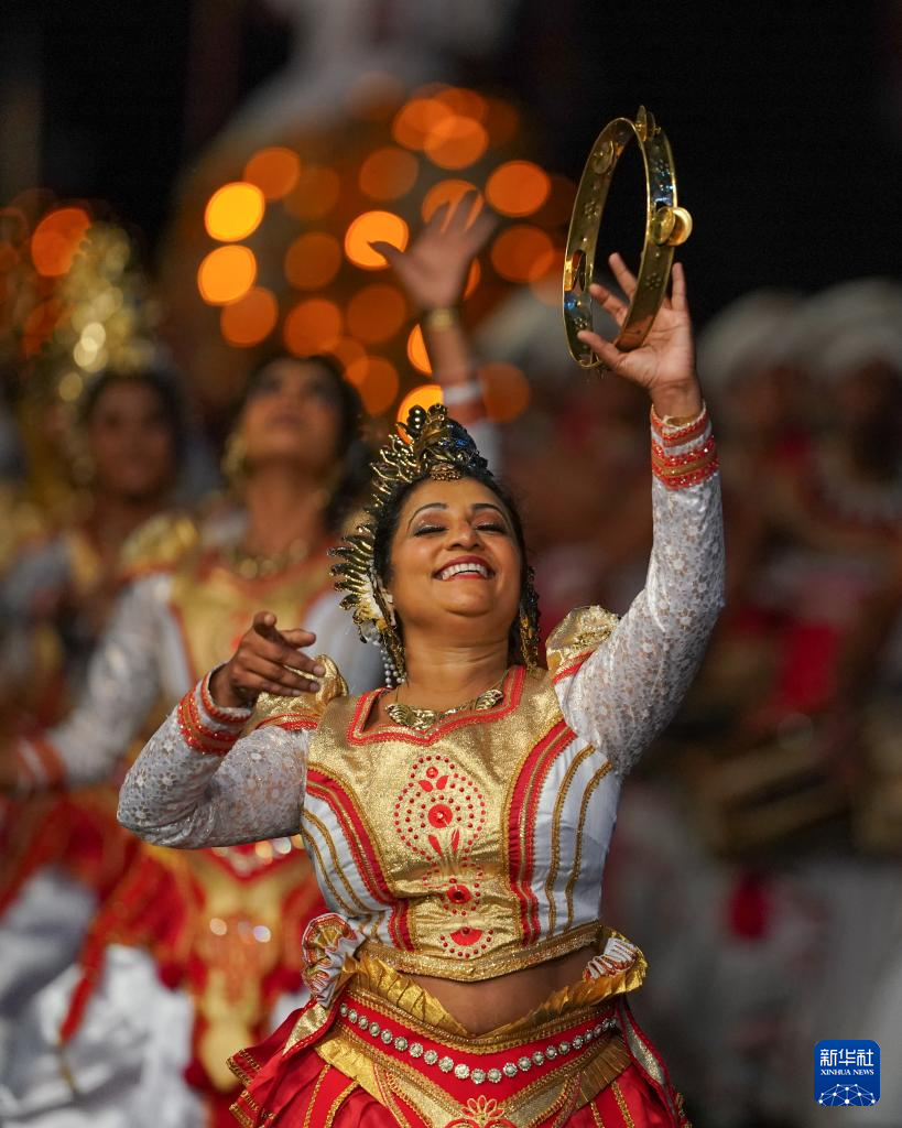8月4日,在斯里兰卡中部城市康提,演员在佛牙节游行活动上表演。