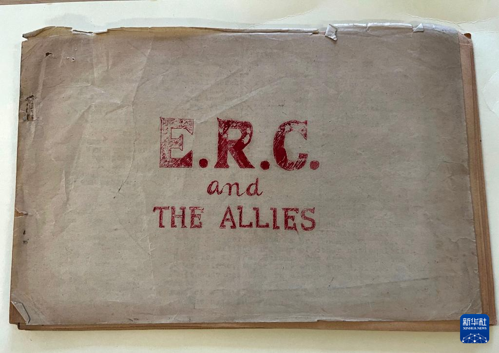 这是8月21日在位于英国曼彻斯特市的人民历史博物馆拍摄的由曾参加东江纵队的新华社伦敦分社首任社长黄作梅主笔编撰的东江纵队援救盟军人员的档案资料。新华社记者 吴黎明 摄