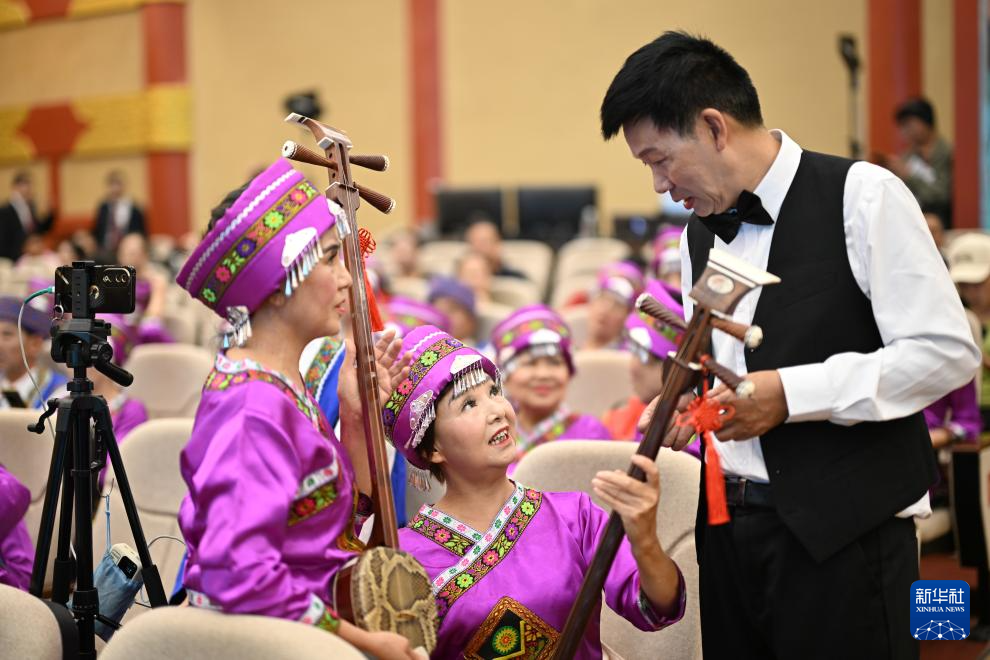 9月22日,来自湖北宜昌南曲社的演员在比赛间隙交流琴艺。