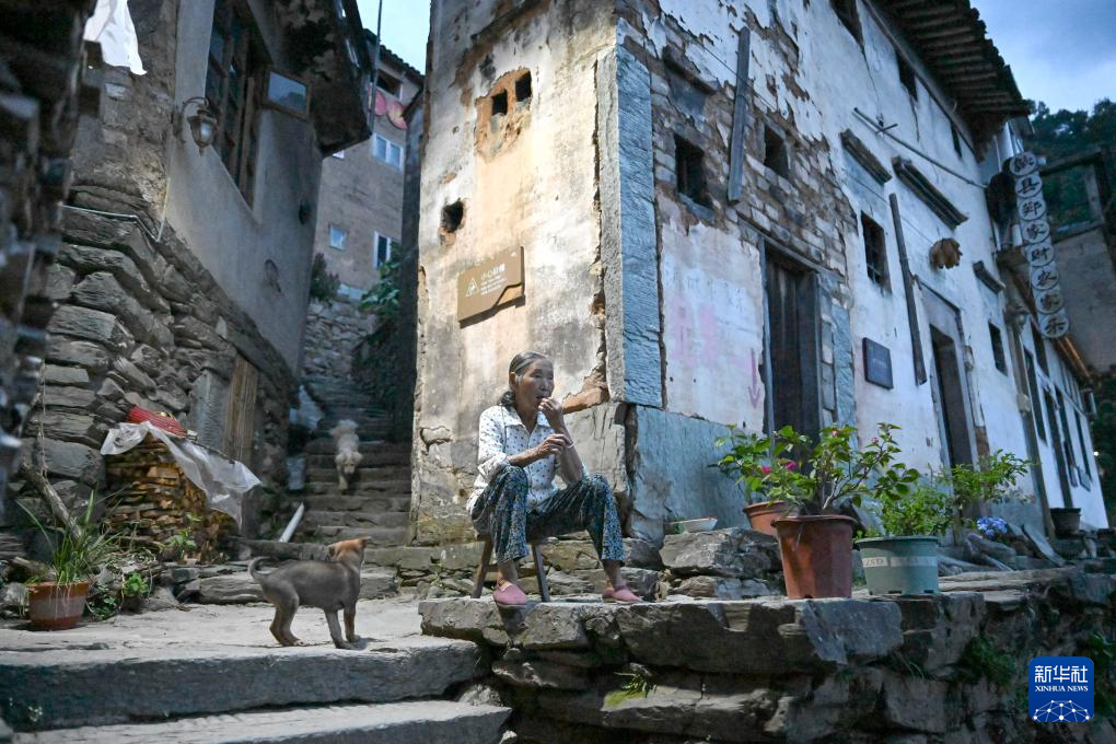 9月17日,阳产村村民吃完晚饭后在房前休息。
