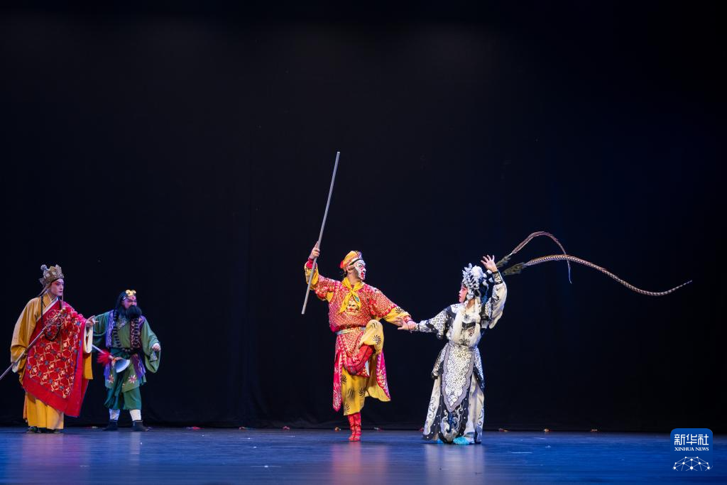 中国浙江婺剧艺术研究院25日在刚果(金)首都金沙萨演出《天女散花》《三打白骨精》等婺剧经典剧目,精彩演绎受到当地观众热烈欢迎。演出由中国驻刚果(金)大使馆主办,浙江婺剧艺术研究院20余名艺术家组成创演阵容,在中国援建的金沙萨中部非洲文化艺术中心举行。演出吸引了约800名观众。