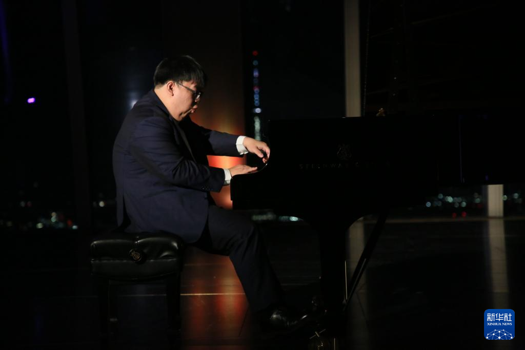 10月6日,在美国纽约,青年钢琴家韦子健在“听月雅集”中秋音乐会上表演。