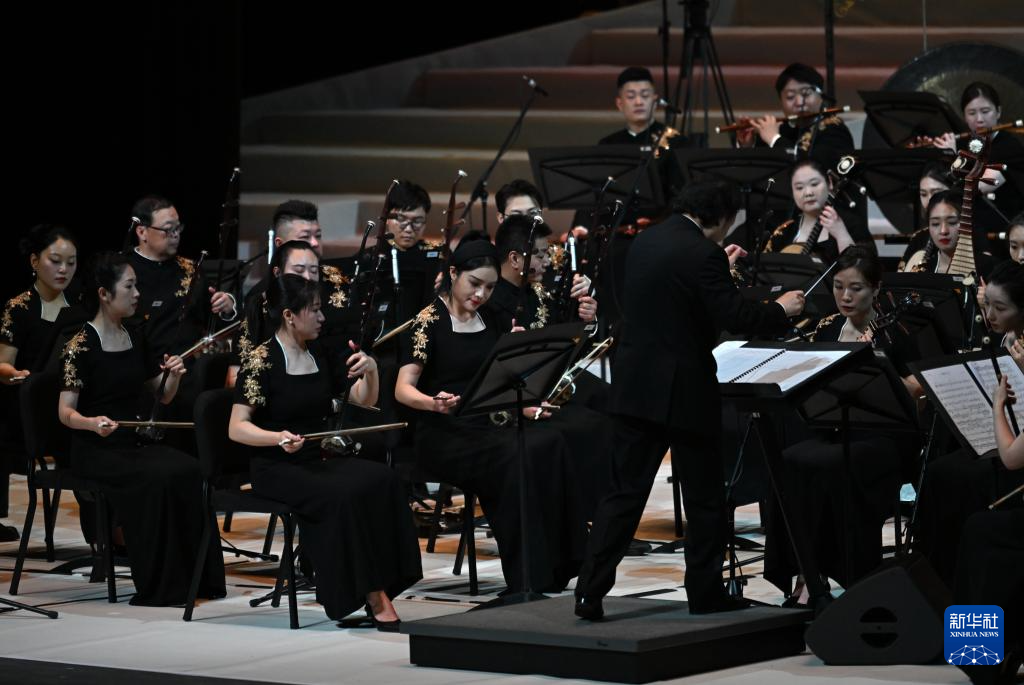 10月16日,乐团在第十一届丝绸之路国际艺术节开幕式上表演民族管弦乐《梦起长安》。