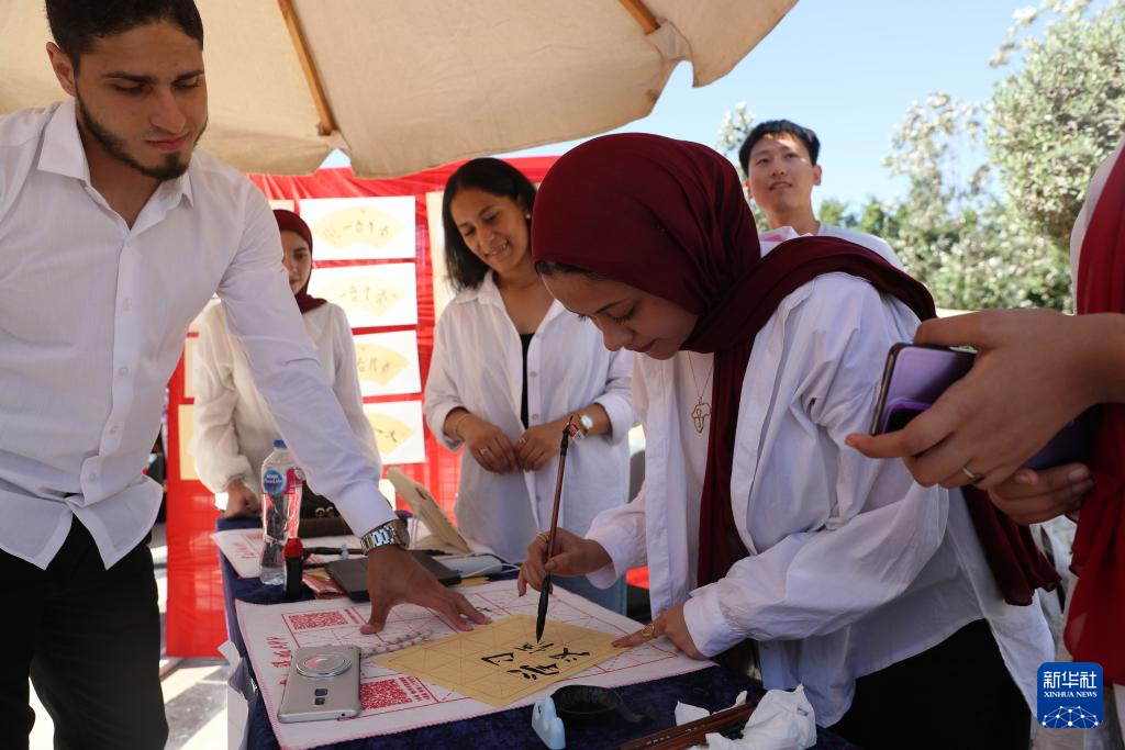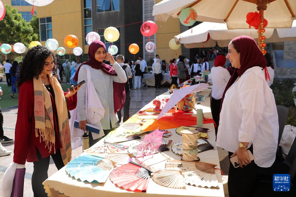 当日,开罗巴德尔大学在校园内举办中国文化节,现场不仅有中国书法、剪纸、手工艺品等展台,也有中国武术表演、传统民族服饰展秀、美食制作等活动,吸引众多学校师生参与。