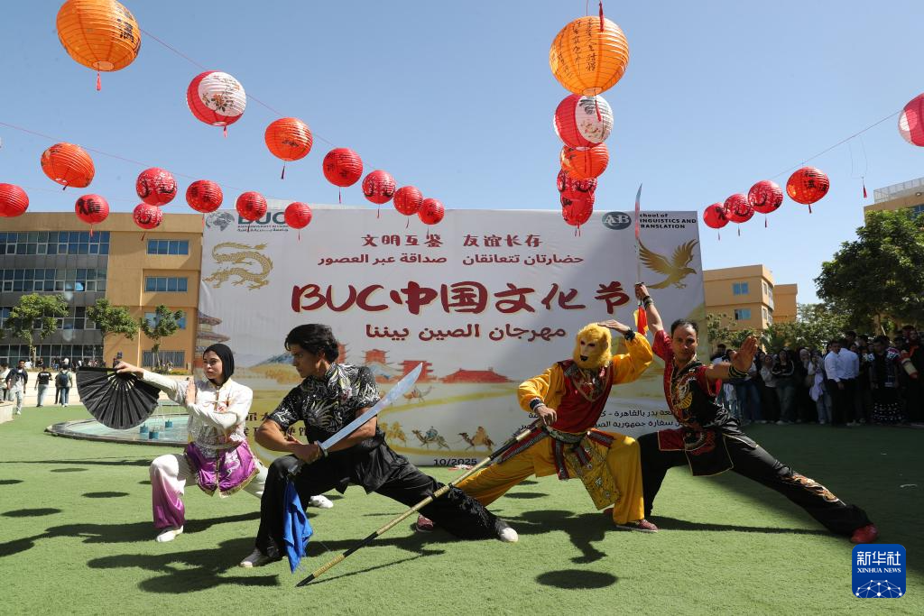 10月20日,在埃及开罗,表演者在开罗巴德尔大学举办的中国文化节上展示中国武术。