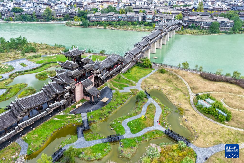 这是10月30日拍摄的濯水古镇和风雨廊桥景色(无人机照片)。