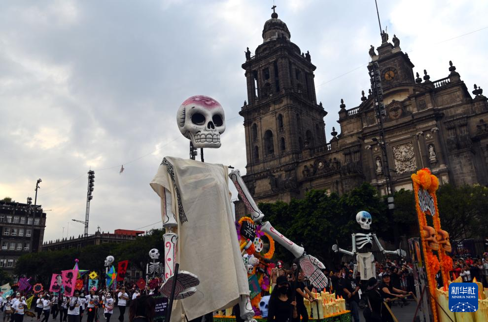 墨西哥城举行亡灵节游行-新华网