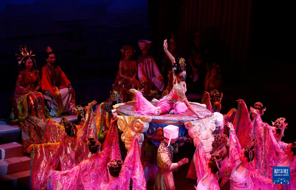 演员在美国纽约林肯剧院表演《大梦敦煌》片段(2020年1月9日摄)。