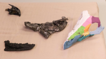 主持人在甘肃省群众文艺展演展播活动首场演出中和机器人互动(1月7日摄)。