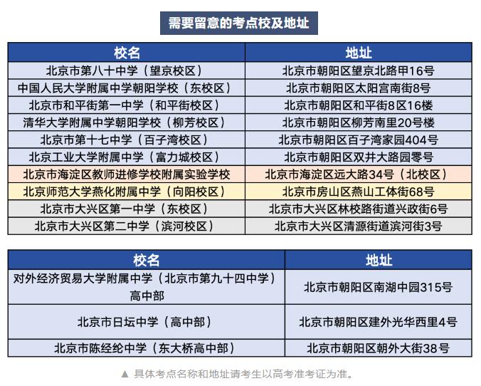 ■ 对外经济贸易大学附属中学(北京市第九十四中学)考点设在高中部,北京市日坛中学考点设在高中部,北京市陈经纶中学考点设在东大桥高中部。
