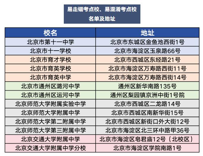 ■ 北京师范大学附属中学考点、北京师范大学第二附属中学考点和北京师范大学附属实验中学考点均设在北京市西城区,而北京师范大学第三附属中学考点则设在北京市海淀区。