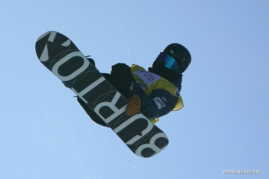 Japan's Hirano Ayumu competes during the men's competition of 2017-2018 FIS Snowboard Halfpipe World Cup held at Genting Resort Secret Garden in Chongli District of Zhangjiakou City, north China's Hebei Province, Dec. 21, 2017. Hirano Ayumu claimed the title of the event with 97.75 points.(Xinhua/Ju Huanzong)