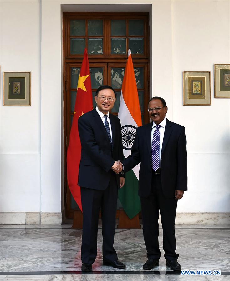 At the 20th round of talks between Chinese and Indian special representatives on boundary issues in the Indian capital Friday, Chinese State Councilor Yang Jiechi exchanged views with Indian National Security Adviser Ajit Doval on bilateral ties, border issues and international and regional issues of common concern.