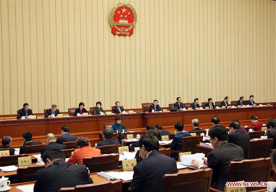 Zhang Dejiang, chairman of the Standing Committee of the National People's Congress (NPC), attends the third plenary session of the 31st meeting of the 12th NPC Standing Committee at the Great Hall of the People in Beijing, capital of China, Dec. 24, 2017. (Xinhua/Liu Weibing)