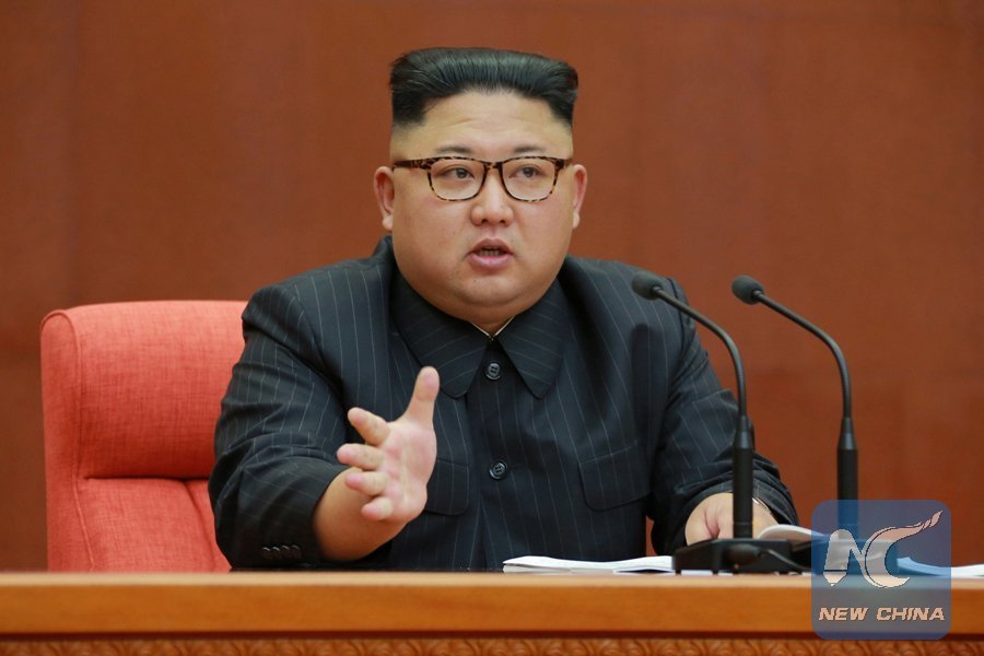 File Photo: Kim Jong Un, top leader of the Democratic People's Republic of Korea (DPRK), speaks during the Second Plenum of the 7th Central Committee of the Workers' Party of Korea in Pyongyang, capital of the DPRK, Oct. 7, 2017. (Xinhua/KCNA)