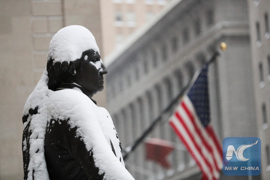 New York State Governor Andrew Cuomo has declared state of emergency for the entire downstate region on Thursday as the snow storm continued to deteriorate. The massive winter storm has swept most part of the state, dumping snow and bringing strong winds to the area. (Xinhua/Wang Ying)