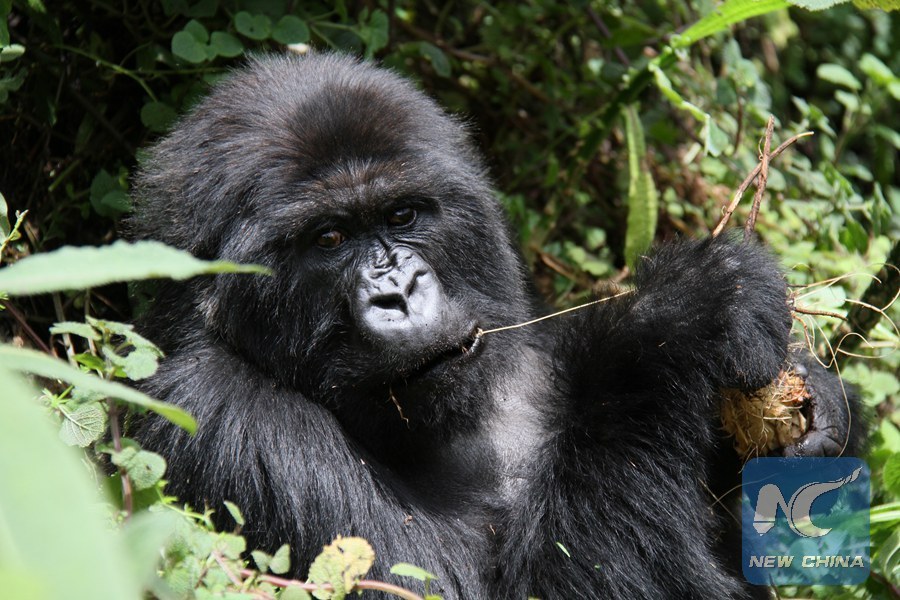 A gorilla is seen at Volcanoes National Park in Rwanda, Oct. 8, 2016. (Xinhua/Ynag Mengxi)