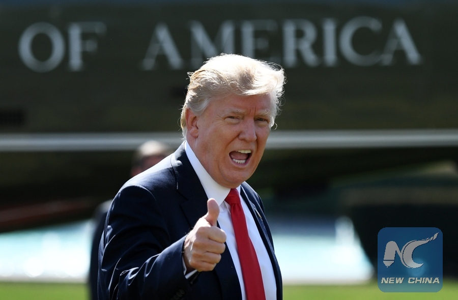 File Photo: U.S. President Donald Trump walks to the Oval Office after returning to the White House in Washington D.C., the United States, Feb. 24, 2017. (Xinhua/Yin Bogu)