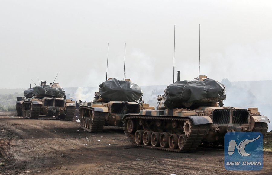 Turkish army tanks are seen in Afrin, Syria, on Jan. 22, 2018. (Xinhua)