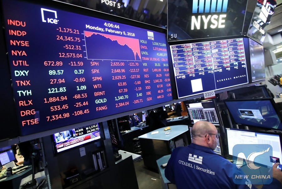 Traders work at the New York Stock Exchange in New York, the United States, on Feb. 5, 2018. U.S. stocks closed sharply lower on Monday, with the Dow plummeting 4.60 percent, as the market took a heavy hit from panic sales. (Xinhua/Wang Ying)Traders work at the New York Stock Exchange in New York, the United States, on Feb. 5, 2018. U.S. stocks closed sharply lower on Monday, with the Dow plummeting 4.60 percent, as the market took a heavy hit from panic sales. (Xinhua/Wang Ying)