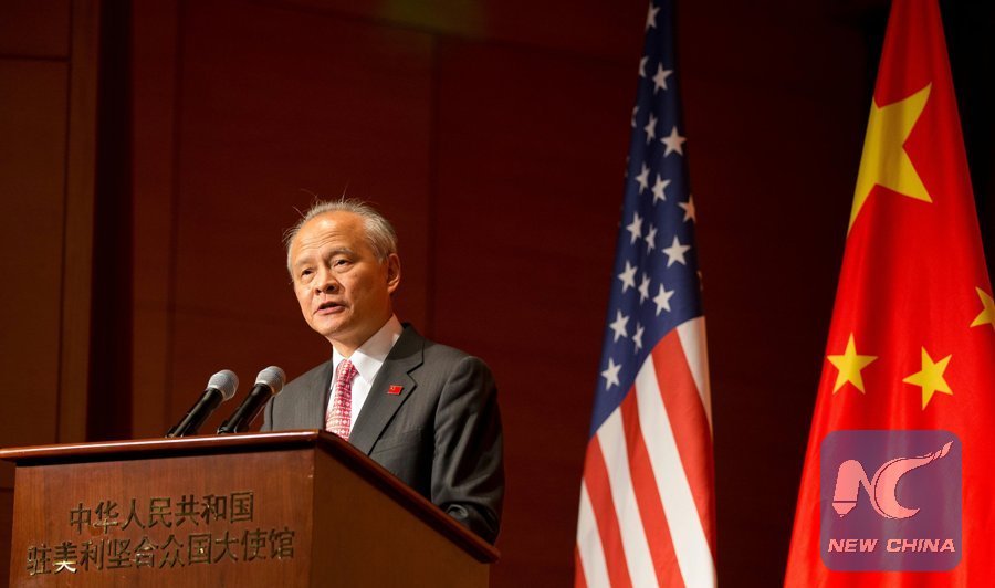 File Photo: Chinese Ambassador to the United States Cui Tiankai speaks at a reception celebrating the 90th anniversary of the founding of the Chinese People's Liberation Army (PLA) at the Chinese embassy in Washington D.C., the United States, on July 27, 2017. (Xinhua/Ting Shen)