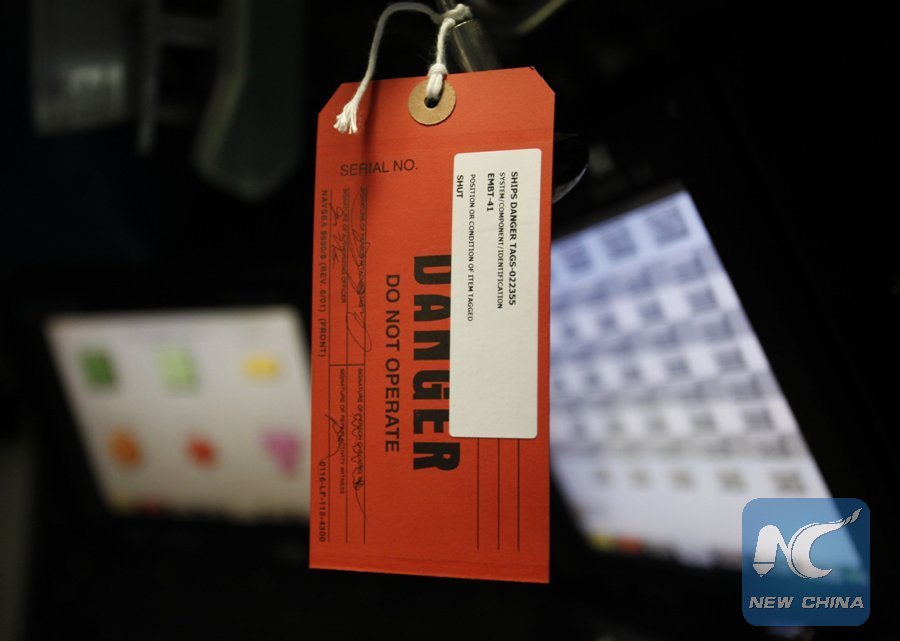A red danger tag hanging in the command and control center is seen inside U.S. Virginia-class nuclear attack submarine USS Hawaii at the U.S. naval base in Yokosuka, south of Tokyo, Aug. 22, 2014. (Xinhua/REUTERS)