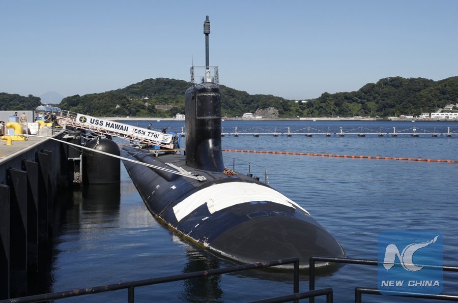 U.S. Virginia-class nuclear attack submarine USS Hawaii is berthed at a dock at the U.S. naval base in Yokosuka, south of Tokyo, August 22, 2014. (Xinhua/REUTERS)